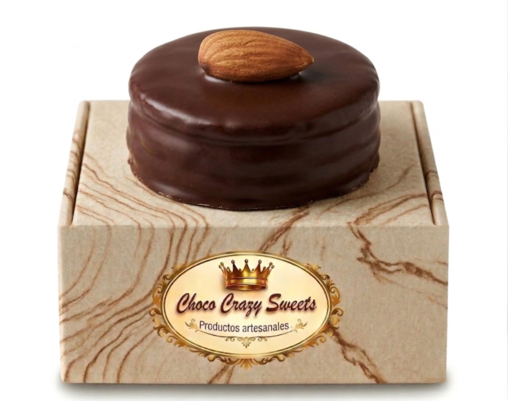 Alfajor individual de almendras bañado en chocolate semiamargo